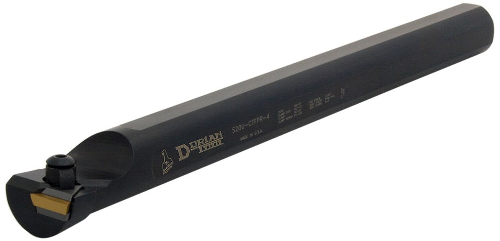 Excellent locking ability. Easier to index or change insert without the lock pin. Allows for an optional chipbreaker to be placed on the insert. Style F - 0 degree end cutting edge angle for positive triangle TPG 322 inserts. Right hand cut.
