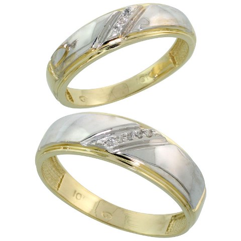 World Jewels 10K Yellow Gold 0.05 CT. Brilliant Cut Diamond Wedding Ring Set, Size 7
