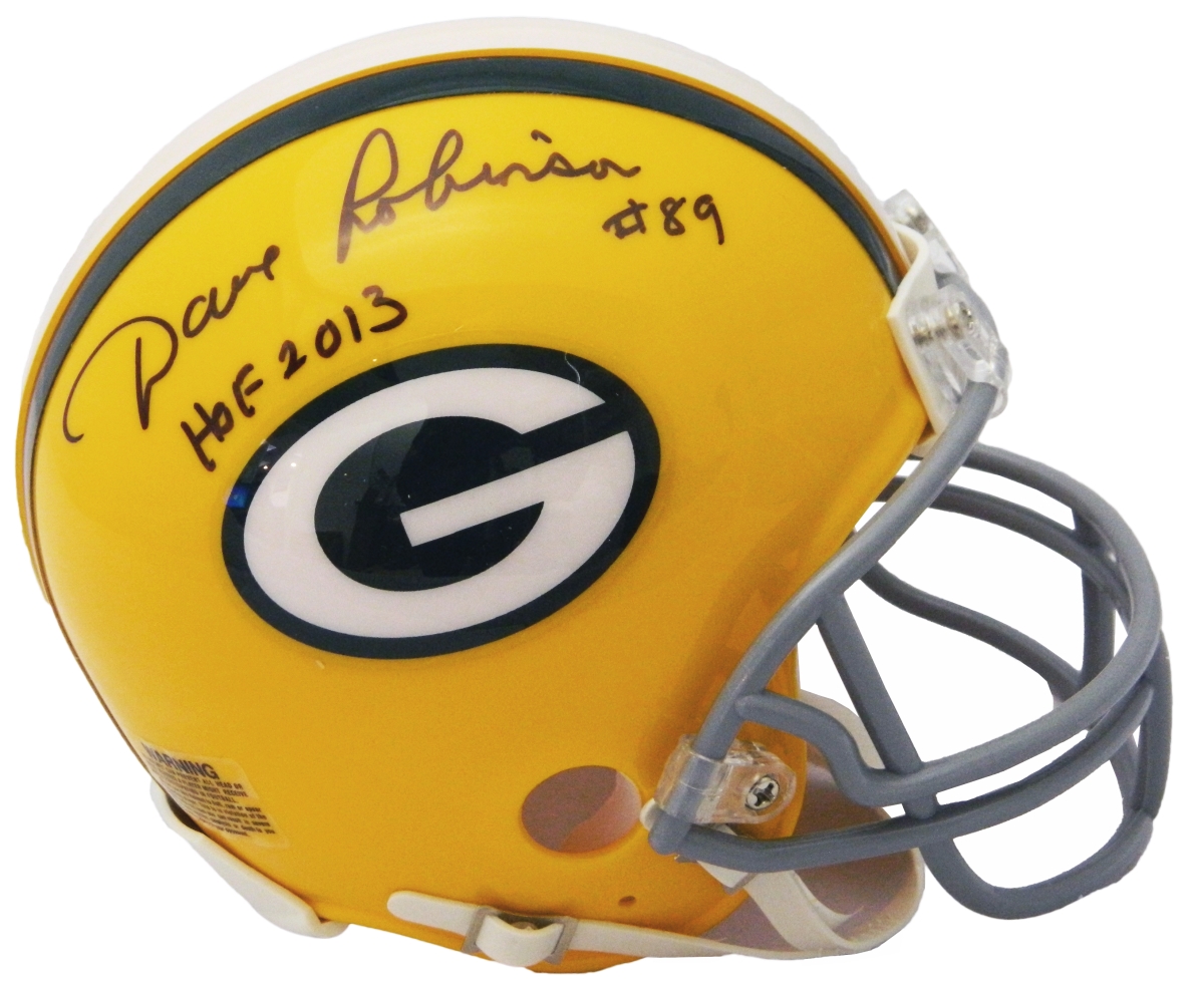 Schwartz Sports Memorabilia ROBMIN300 Dave Robinson Signed Green Bay Packers Throwback Riddell Mini Helmet with HOF 2013
