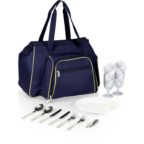 - Comes with picnicware for two, including plates, stainless steel utensils and shatter-resistant wine glasses