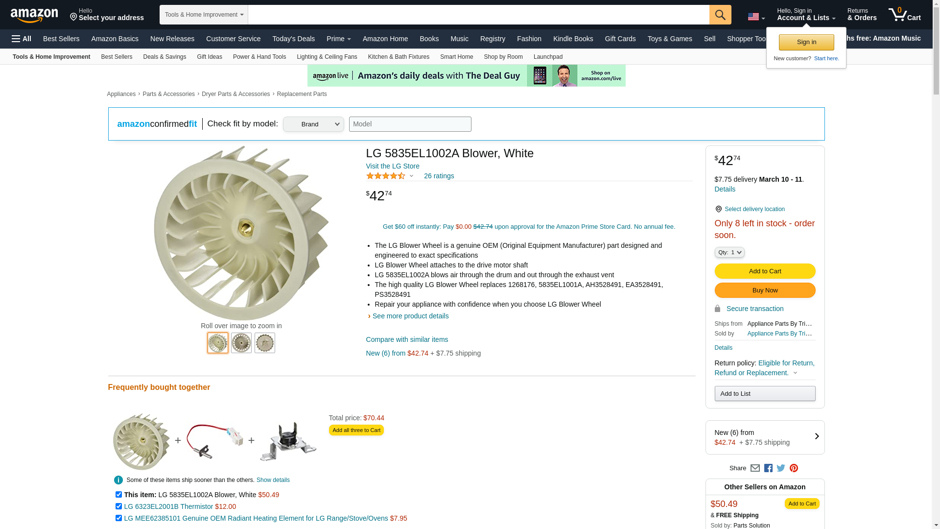 ![]() lgparts.com | 5835EL1002A | 1 | 44 | 1 | 1 @ $75.95 |