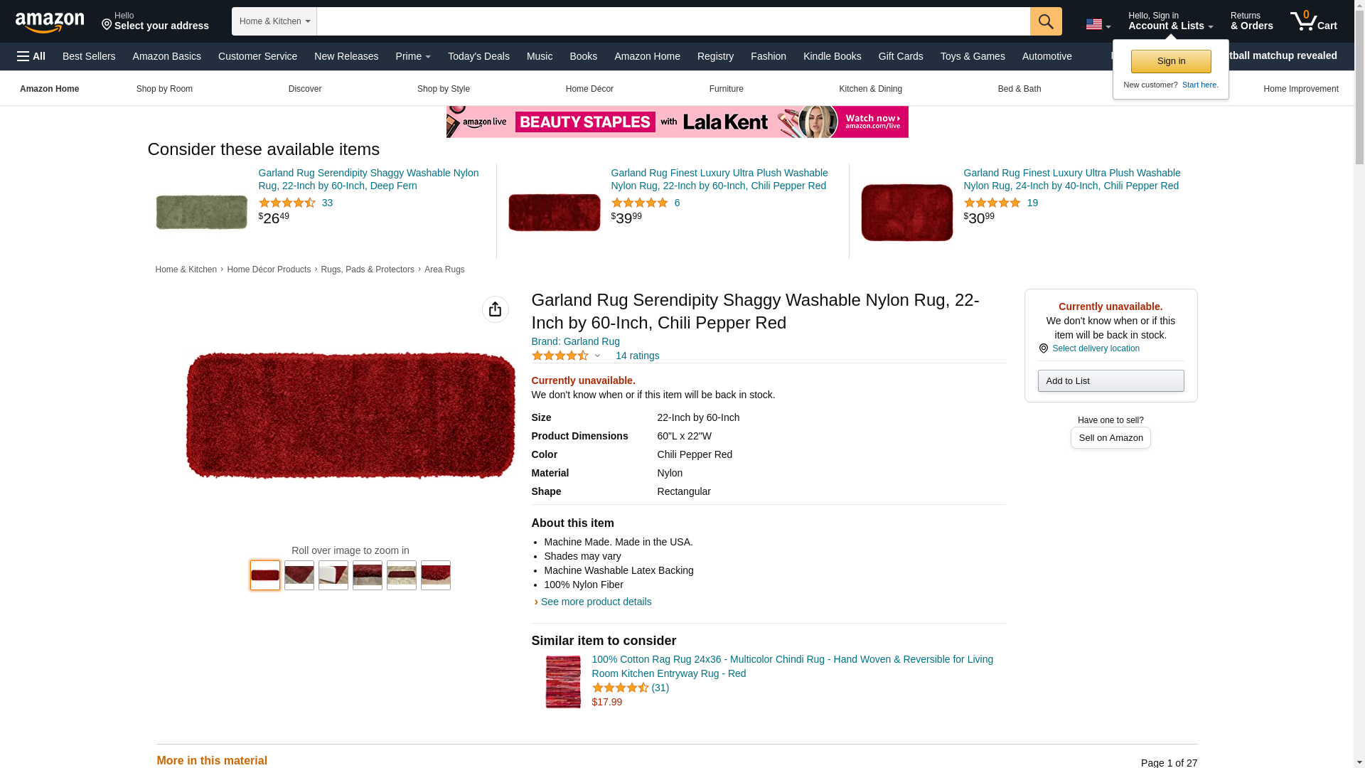 Garland Rug Serendipity Shaggy Washable Nylon Rug, 22-Inch by 60-Inch, Chili Pepper Red