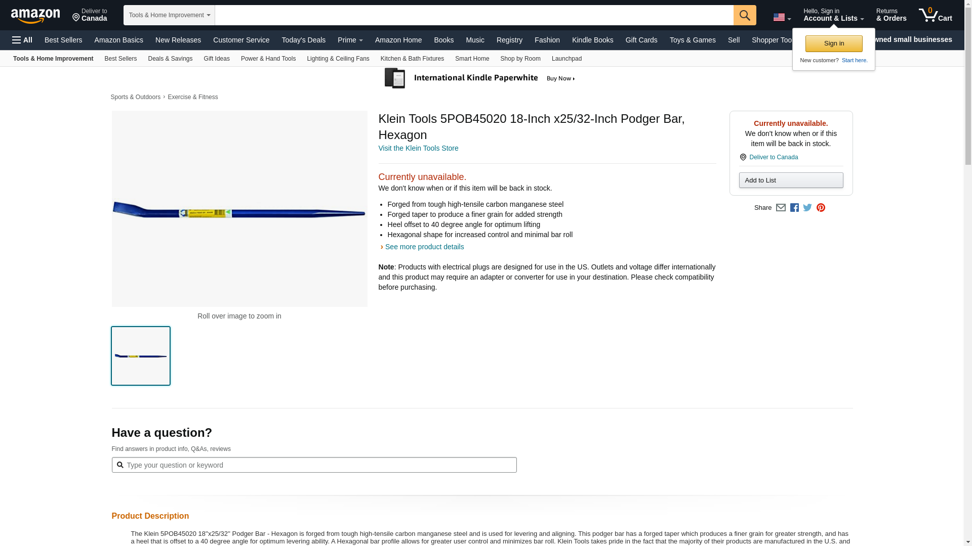Klein Tools 18" X 25/32" Podger Bar Hexagon - 5POB45020