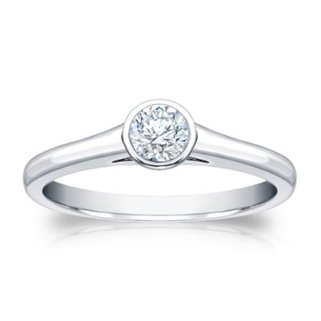 This stylish solitaire ring features a sparkling 1/4ct roundbrilliant-cut diamond in bezel setting. Crafted of platinum, thisring is completed by a highly polished finish. <br /> <br /> <ul> <li>Jewelry Type: Fine</li> <li>Band Width: 2-3 mm</li> <li>Stone: Diamond</li> <li>Clarity: SI1-SI2</li> <li>Diamond Color: H-I</li> <li>Center Diamond Weight: Up to .5 Carats</li> <li>Total Diamond Weight: Up to .5 Carats</li> <li>Diamond Cut: Round</li> <li>Jewelry Setting: Bezel</li> <li>Ring Style: Solitaire</li> <li>Cut Grade: Very Good</li> <li>Jewelry Finish: High Polish</li> <li>Metal Color: White</li> <li>Metal: Platinum</li> <li>Size: 8.5, 5.5, 7, 6, 5, 6.5, 4, 7.5, 4.5, 9, 8</li> </ul> <br /> <br />