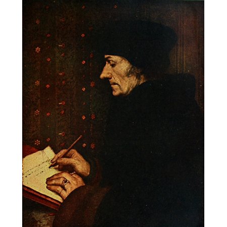 Hans Holbein Stretched Canvas Art - The Writing of Erasmus History of Painting 1911 - Medium 18 x 24 inch Wall Art Decor Size.