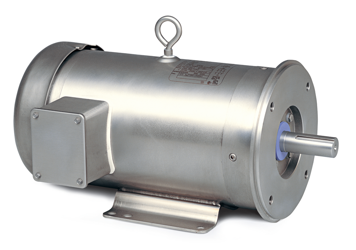 Baldor Electric, CESSWDM3554T, 1.5HP, 1760RPM, 3PH, 460V;230V;208V, 145TC Frame, C-Face Flange, Foot Mount, TEFC, Stainless Steel Washdown Motor