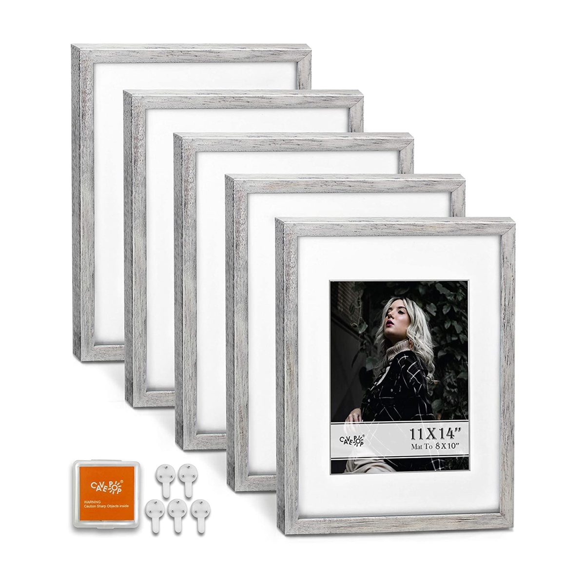 Cavepop SPF-111481-RG 8 x 10 in. Picture Frame with Mat & 11 x 14 in. without Mat, Rustic Grey - 5 Piece