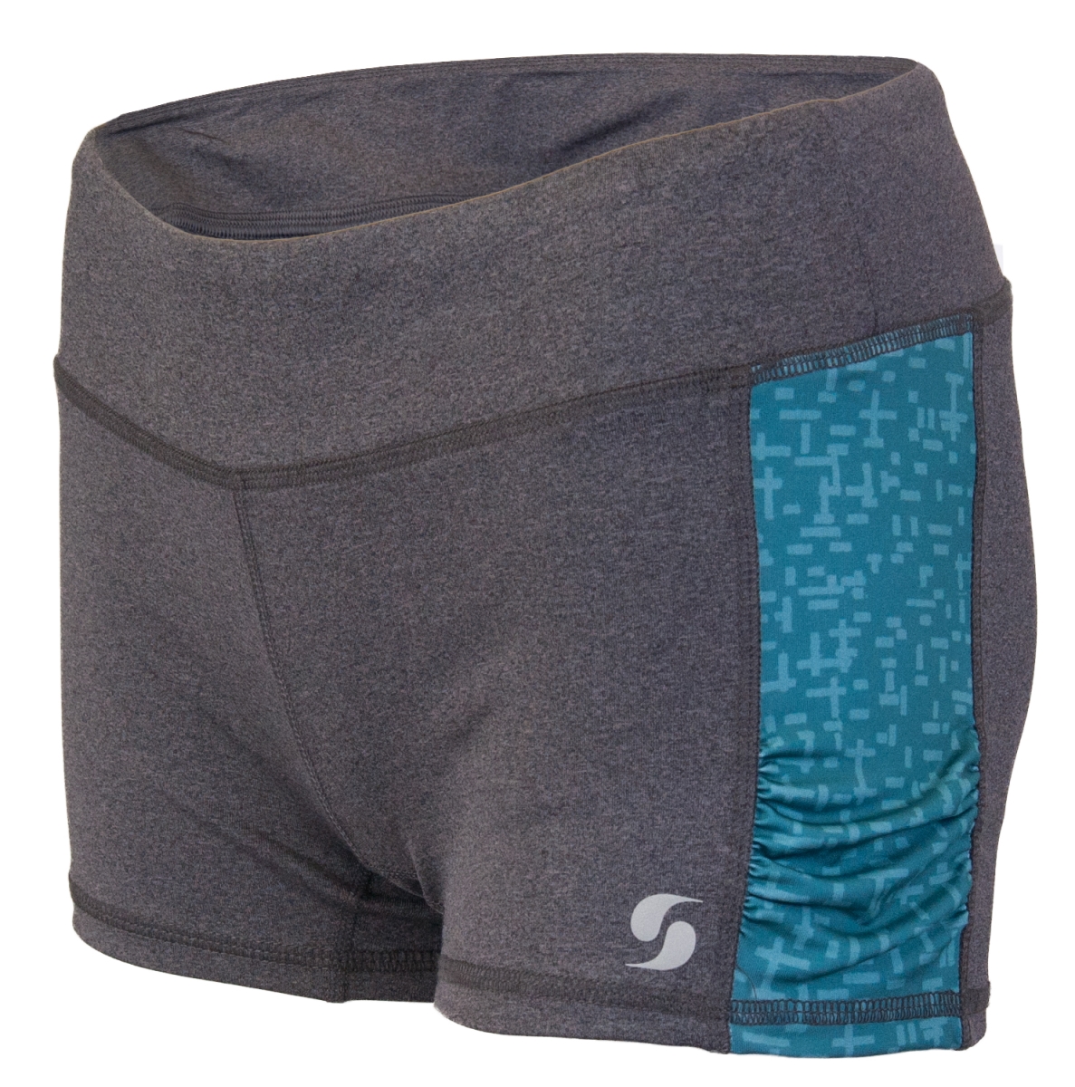 Soffe 1114VGHTHALRG Junior Side Insert Ruched Shorts, Grey Heather & Teal Hatch - Large