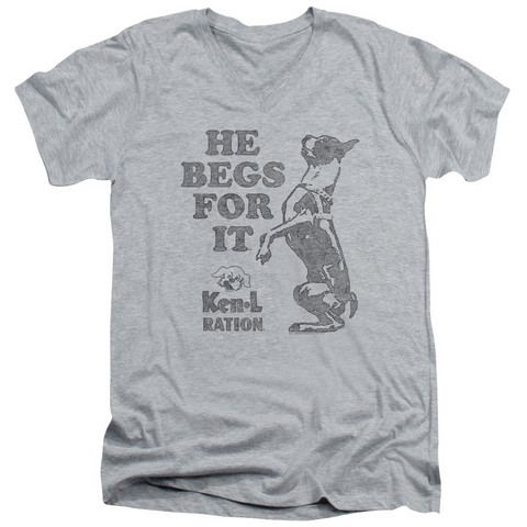 Ken-L Ration Vintage Style Brand Pet Food Dog Begs For It Adult V-Neck T-Shirt
