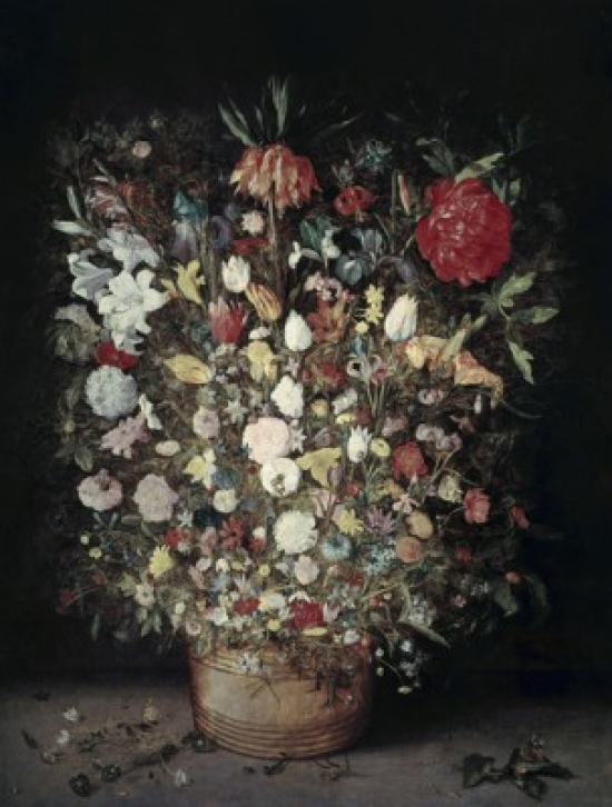 - Flowers in a Wooden Vessel 1606-07 Jan Bruegel the Elder (1568-1625Flemish) Oil on Wood Kunsthistorisches Museum Vienna Austria