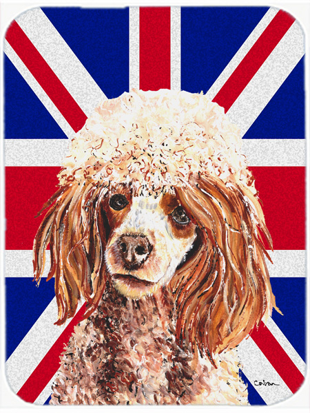 Carolines Treasures SC9888LCB Red Miniature Poodle With English Union Jack British Flag Glass Cutting Board - Large