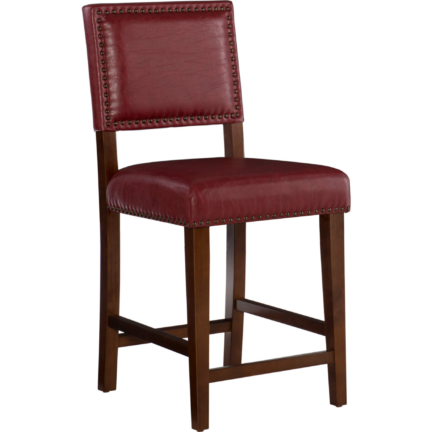 Linon 0232RED-01-KD-U Brook Counter Stool in Red Leatherette & Brown Wood