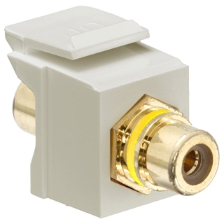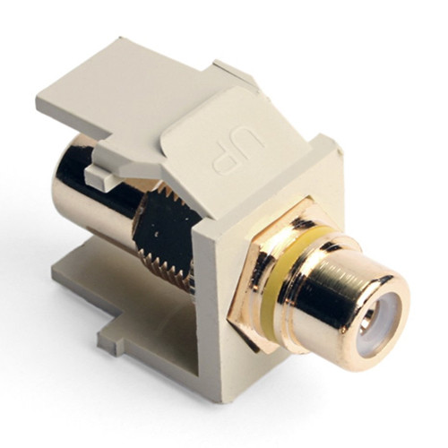 Leviton 40830-BIY QuickPort RCA Jack Connector, Yellow Stripe, Ivory