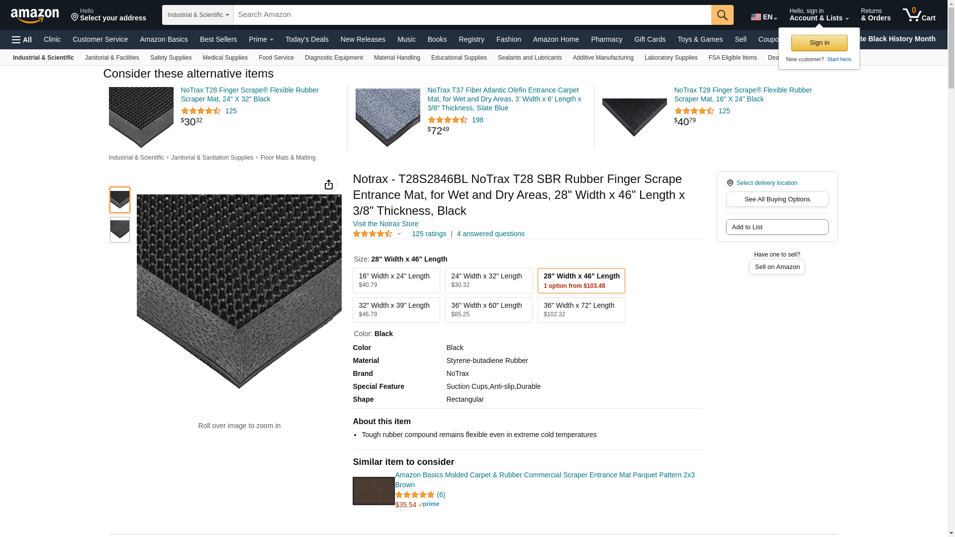 Notrax - T28S2846BL NoTrax T28 SBR Rubber Finger Scrape Entrance Mat, for Wet and Dry Areas, 28" Width x 46" Length x 3/8" Thickness, Black