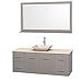 Wyndham Collection Centra 60 inch Single Bathroom Vanity in Grey Oak, Ivory Marble Countertop, Avalon Ivory Marble Sink, and 58 inch Mirror