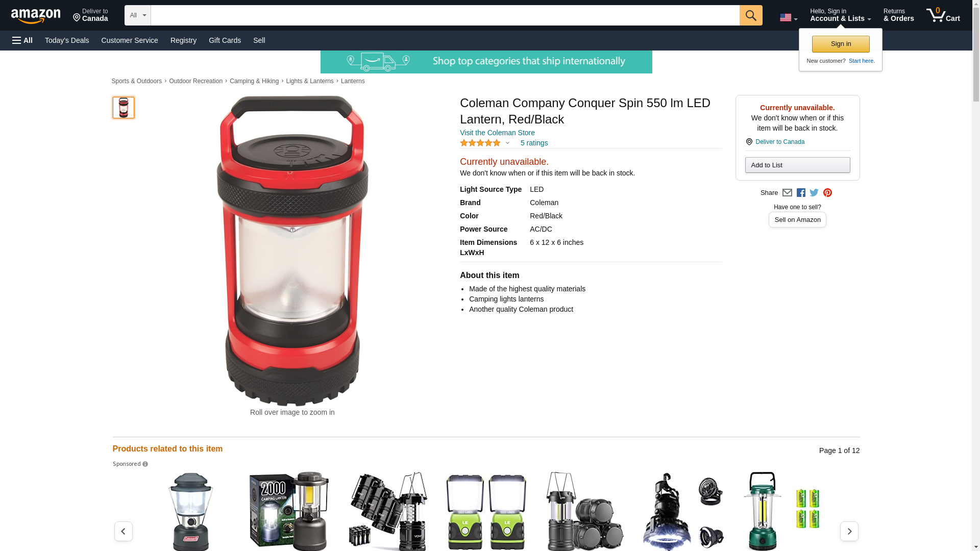 Coleman Conquer Spin 550L LED Lantern, 550 Lumens, 4-D Batteries, Red / Black 2000022328