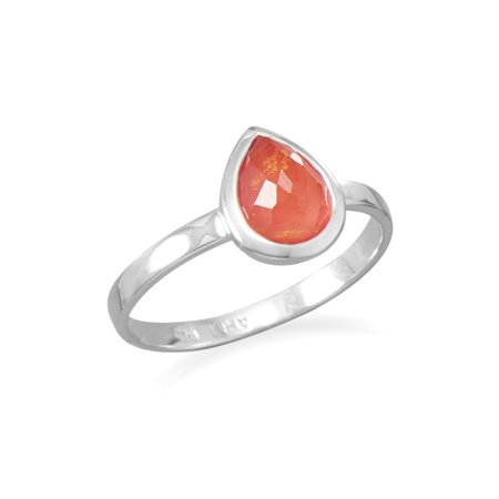 Rhodium plated sterling silver stackable ring with pear shape freeform faceted clear quartz over reconstituted dyed sponge coral. The pear shape doublet is approximately 6mm x 8mm. The band measures 2mm. This ring is available in whole sizes 5-9. The beautiful freeform facet cut gives stones extra brilliance, with lots of artistically irregular cuts along the top of the stones. .925 sterling silver