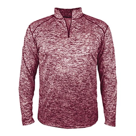 3.5 oz 100% polyester moisture management, anti microbial fabric ; Self-Fabic collar with 7" locking zipper. ; Badger Sport shoulder for maximum movement.; Double- needle hemmed bottom. ; Badger heat seal logo on left sleeve.;