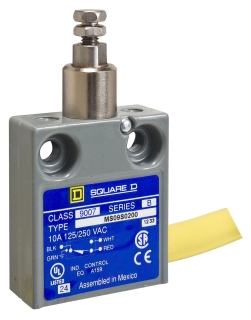 Square D 9007M Limit Switch, Z Contact Form, Adjustable Top Push Plunger, 10A Silver Contacts, 6-ft. Cable, Side Entrance, 18-4 SJTO Cable