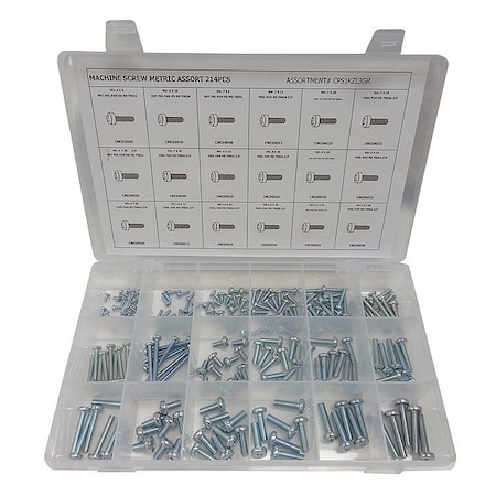 Grainger CPS1KLZ3GR | Machine Screw Assortment, 214 Pieces | 53WR25 | Raptor Supplies Worldwide