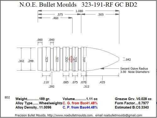 Bullet Mold 5 Cavity Aluminum .323 caliber Gas Check 191 Grains bullet with a Round/Flat nose profile type. designed for use - 11228971