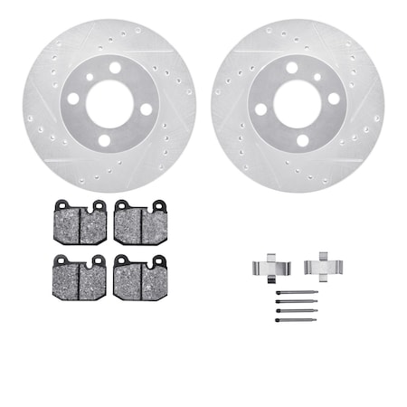 Dynamic Friction Company Front Brake Rotors Drilled and Slotted Silver with 5000 Advanced Brake Pads includes Hardware - 7512-31004