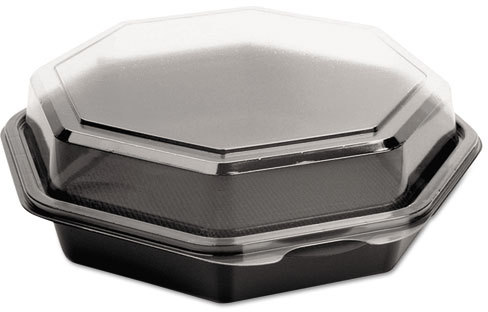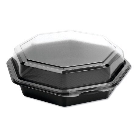 Creative Carryouts? OctaView? Plastic Hinged Lid Food Containers. 21 oz. 7.94 X 7.48 X 2.36 in. Black and Clear. 100 count.