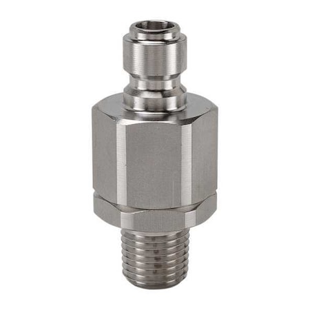 'Hydraulic Coupler Nipple, Series EA, Connection Type MNPT, Coupler Thread Size 1/4 In.-18, Coupler Body Size 1/4 In., Coupler Flow Rate 3.8 gpm, Max. Pressure 3000 psi, Coupler Body Material 316 Stainless Steel, Sleeve Material 316 Stainless Steel, Coupler Finish Plain, Coupler Interchange Type EA, Operating Temp. Range -40 Degrees to 200 Degrees F, Length 2-7/32 In., Coupler Connection Type MNPT, Seal Material Buna, Shut Off Yes, Valve Design Poppet, Locking Mechanism Ball'