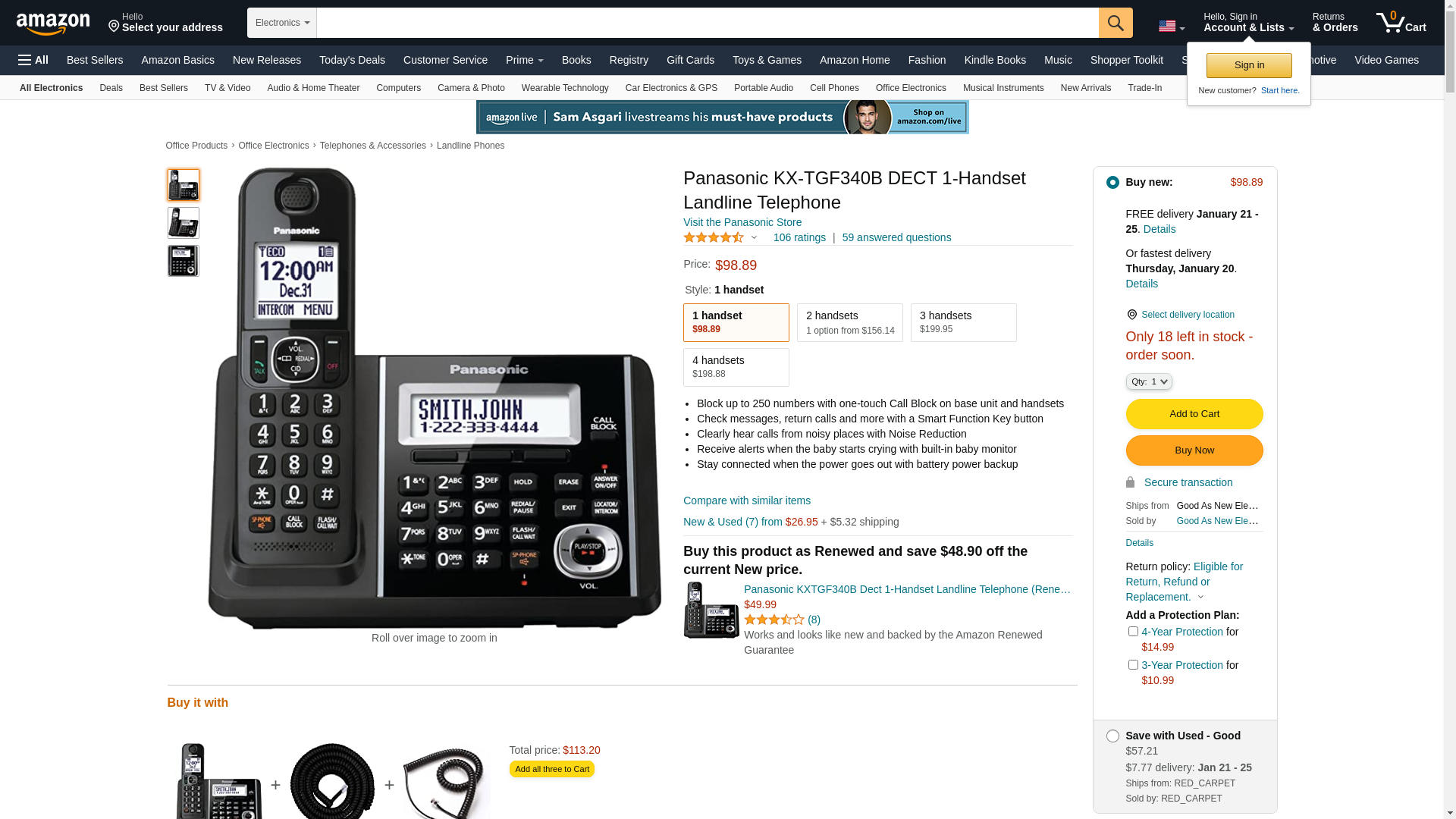Panasonic KXTGF340B Dect 1-Handset Landline Telephone (Renewed)
