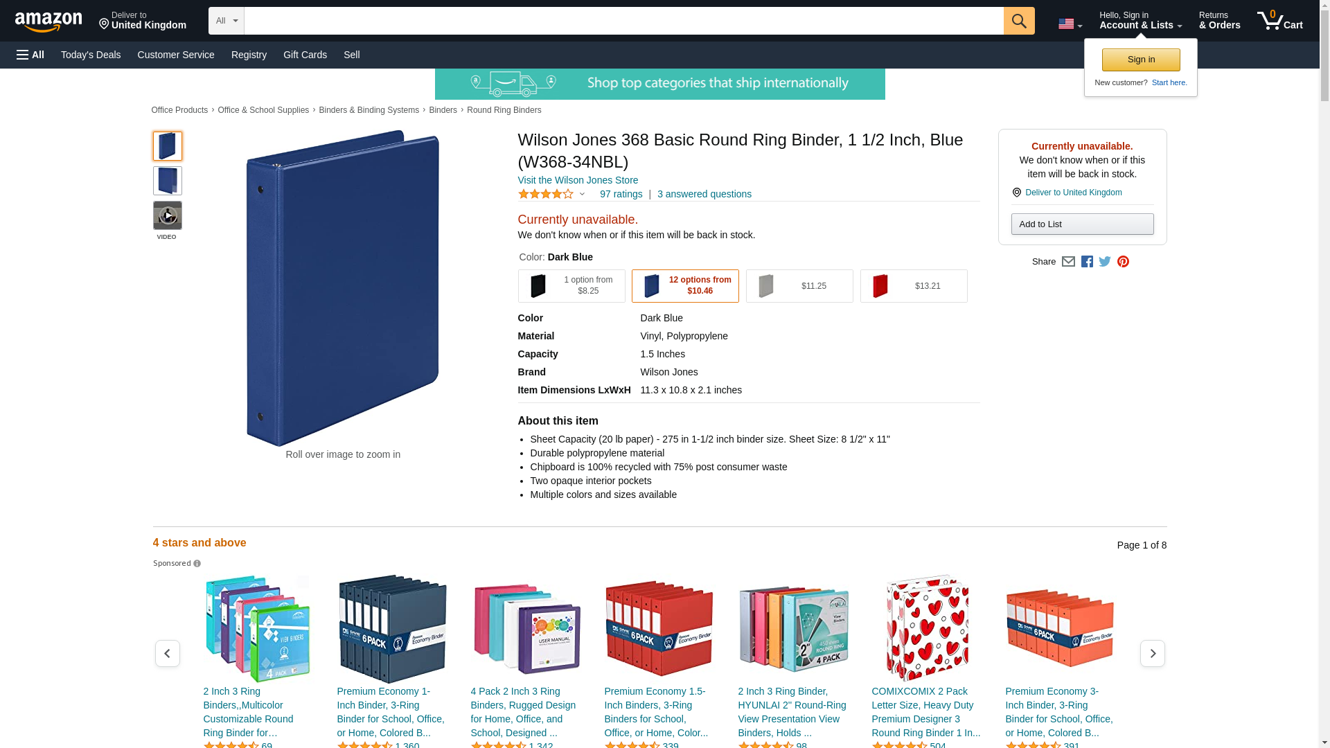 Wilson Jones 368 Basic Round Ring Binder, 1 1/2 Inch, Blue (W368-34NBL). Sheet Capacity (20 lb paper) - 275 in 1-1/2 ...
