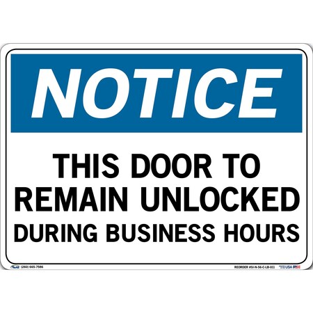 Vestil Notice Sign SI-N-56-C-LB-011 56 14.5X10.5 Label/Decal.011 This Door to Remain Unlocked During Business Hours