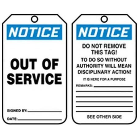 Order MDT801CTP by Accuform 5-3/4" x 3-1/4" PF-Cardstock Tag "Out of Service" - US Mega Store