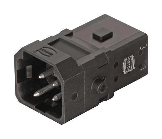 Harting Rectangular Pwr Insert, Pin, 4Pos - 09100032601