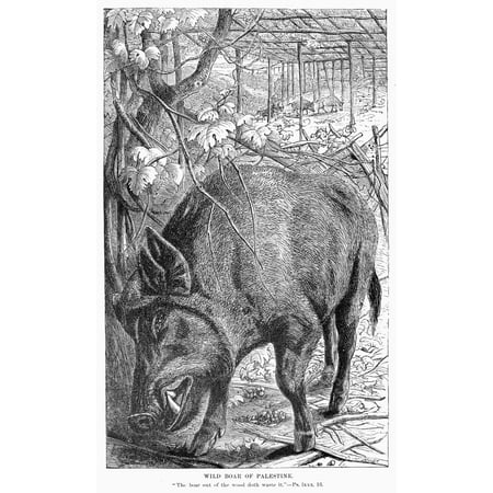 Stretched Canvas Art - Wild Boar. /Nwild Boar Of Palestine. Line Engraving, 19Th Century. - Medium 18 x 24 inch Wall Art Decor Size.