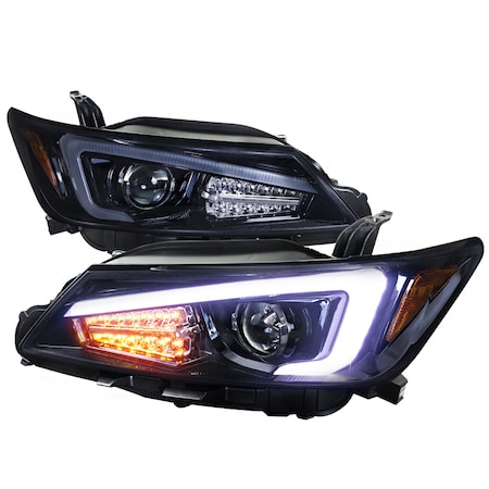 Spec-D Tuning Black Housing Smoke Lens Projector Headlights w/LED Signal & LED Strip Compatible with 2011-2013 Scion tC Left + Right Pair Headlamps Assembly