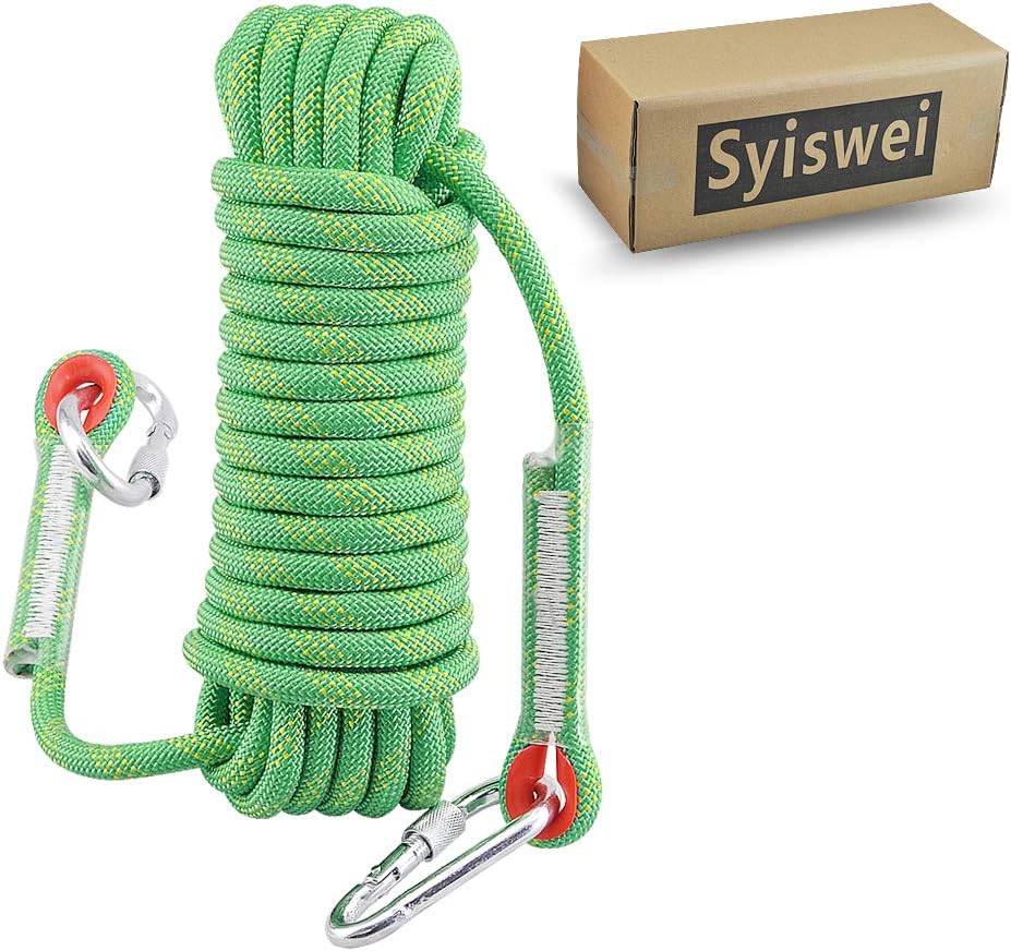 Syiswei Static Rock Climbing Rope 12MM, Upgraded Carabiners Outdoor Safety Fire Escape Rope Climbing Rope Rappelling Rope (Aqua, 10)