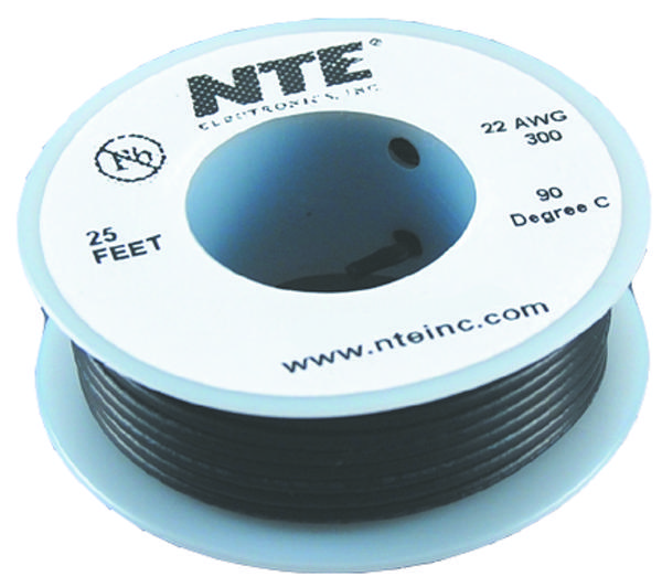 NTE ELECTRONICS WHS18-00-25 HOOK-UP WIRE, 25FT, 18AWG, CU, BLACK (1 piece)