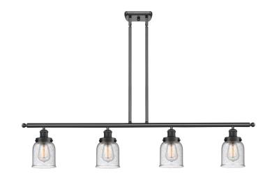 INNOVATIONS LIGHTING 916-4I-BK-G54-LED BALLSTON SMALL BELL 4 LIGHT 48 INCH SEEDY GLASS ISLAND LIGHT, MATTE BLACK, LED