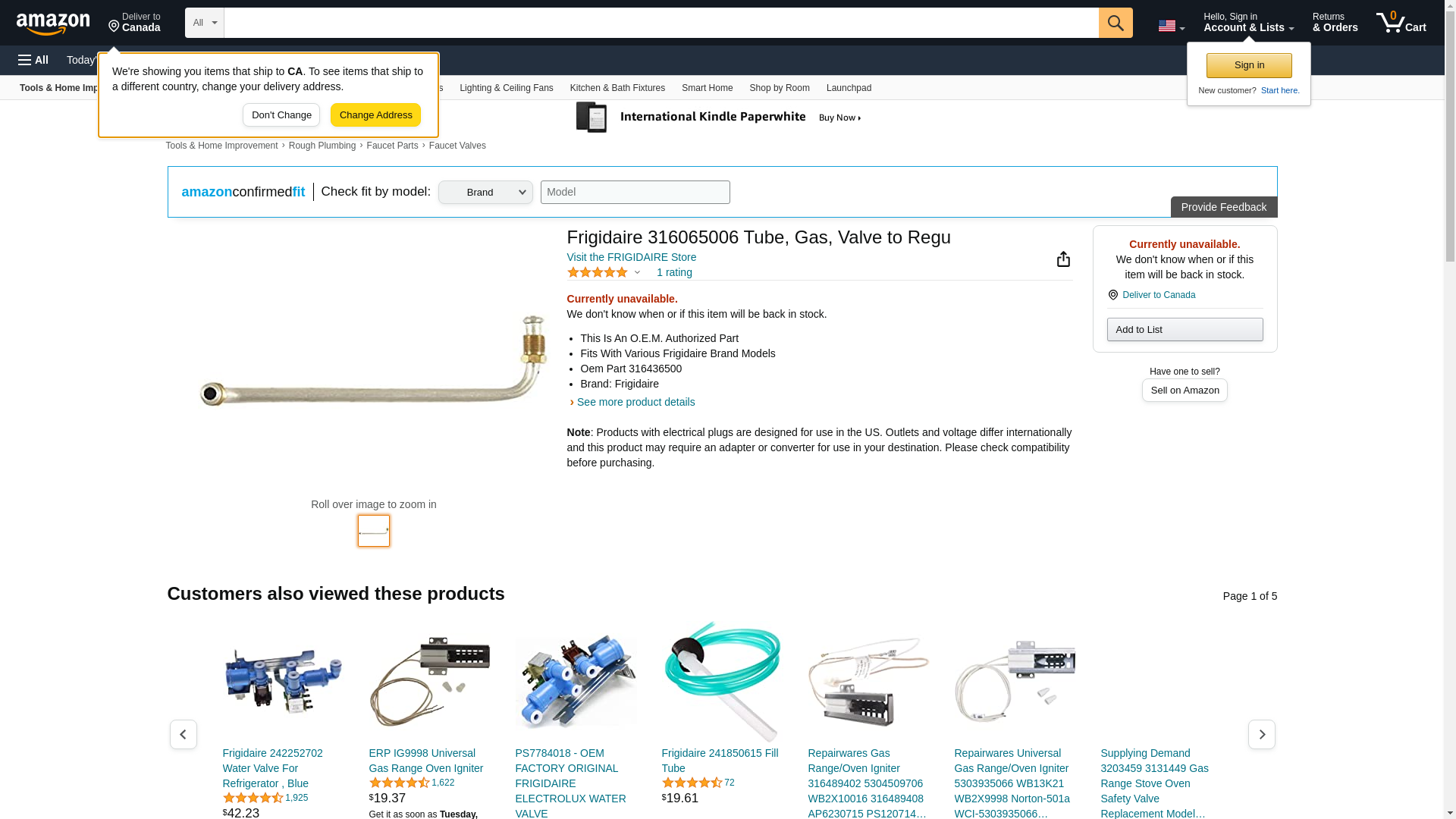 GENUINE Frigidaire 316436500 Gas Tube or Connector, Unit