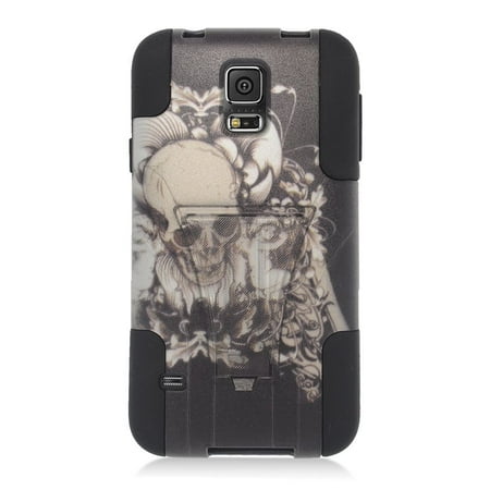 EagleCell Skull with Angel Hard Dual Layer Plastic Silicone Stand Case For Samsung Galaxy S5 - Black/White