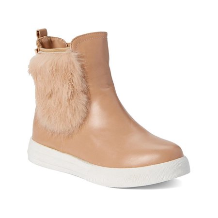 <ul> <li>Womens booties from First Date brand, both stylsih and comfy</li> <li>Boot in blush comes with fluffy faux fur panel on one side</li> <li>Flat sole ensures you'll be comfortable all-day long</li> <li>synthetic</li> <li>Sizing is based on U.S. shoe size standards. Contact us if you have any questions</li> </ul>