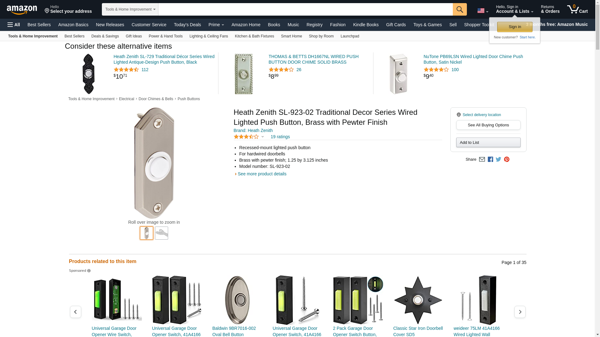 Heath Zenith SL-923-02 Traditional Decor Series Wired Lighted Push Button, Brass with Pewter Finish