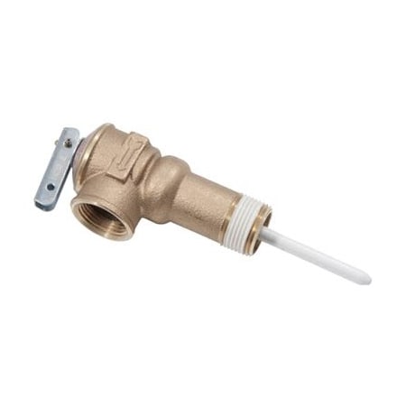 3/4" Male NPT Inlet x Female NPT Outlet With 2" Long Shank, T & P Valve, Designed To Protect Water Heaters From Overheating & Over Pressurization, Safe Operation Of The Water Heater, Fits Directly Into Water Heater, Temperature Relief 210 Degrees Fahrenheit, 99 Degrees Celsius, Factory Setting Pressure 150 PSI Test Lever Standard, Drain Line Must Be Fitted To T & P Valve, Read Instruction Manual, CSA & ASME Listed, Certified ANSI Z21. 22, 1 Year .