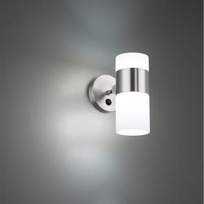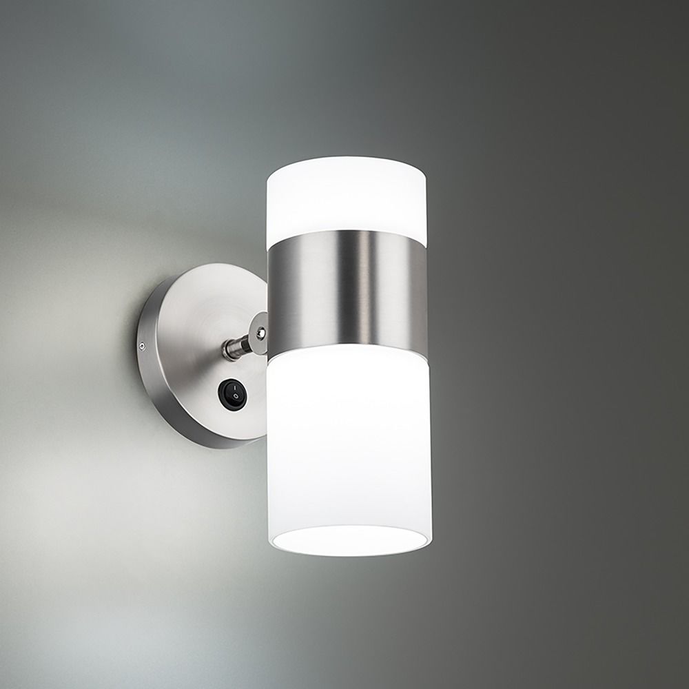 - Install on both or either sides of the bed or as a wall sconce with up and downlight illumination diffused by an etched opal glass.