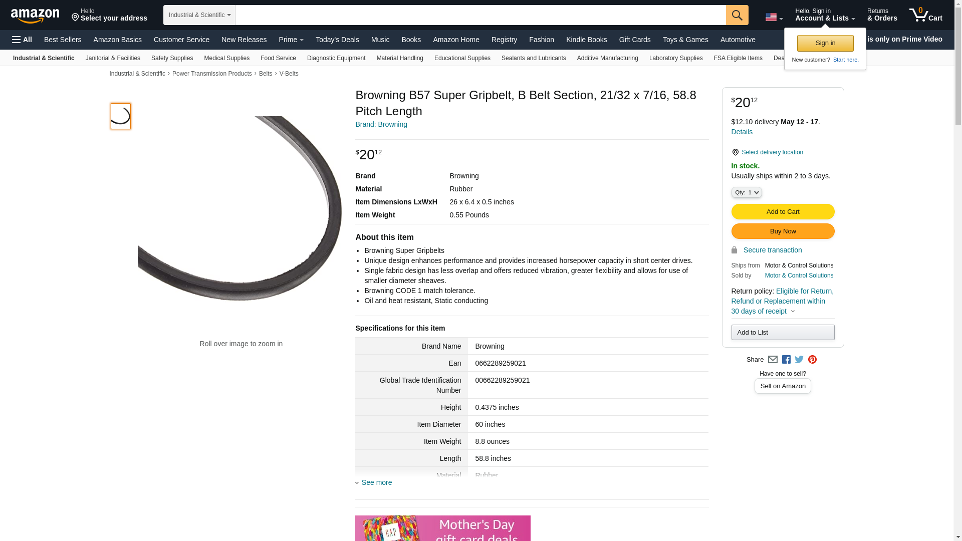 Browning, B57, V-Belt, 60 (in) Outside Length