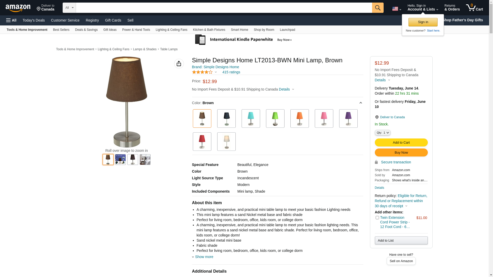 A charming, inexpensive, and practical mini table lamp to meet your basic fashion lighting needs. This mini lamp features a sand nickel metal base and fabric shade. Perfect for living room, bedroom, office, kids room, or college dorm!<br/><br/>Features :<br/><br/>- Sand nickel metal mini base<br/>- Fabric shade<br/>- Perfect for living room, bedroom, office, kids room, or college dorm<br/>- Height: 10.63" Shade diameter: 4.92"<br/>- Uses 1 x 60W Type B Candelabra Base Bulb (not included)<br/>- Lightweight.<br/><br/>Specifications :<br/><br/>- Frame Material : Metal<br/>- Product Color : Sand Nickel<br/>- Product Color : Brown Shade<br/>- Product Dimensions : 10.63" H x 4.92" W x 4.92" D.