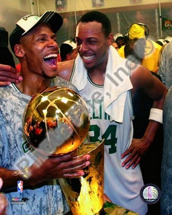 Photofile PFSAAJZ03001 Ray Allen & Paul Pierce Game Six of the 2008 NBA Finals With Trophy In the Locker Room 34 Sport