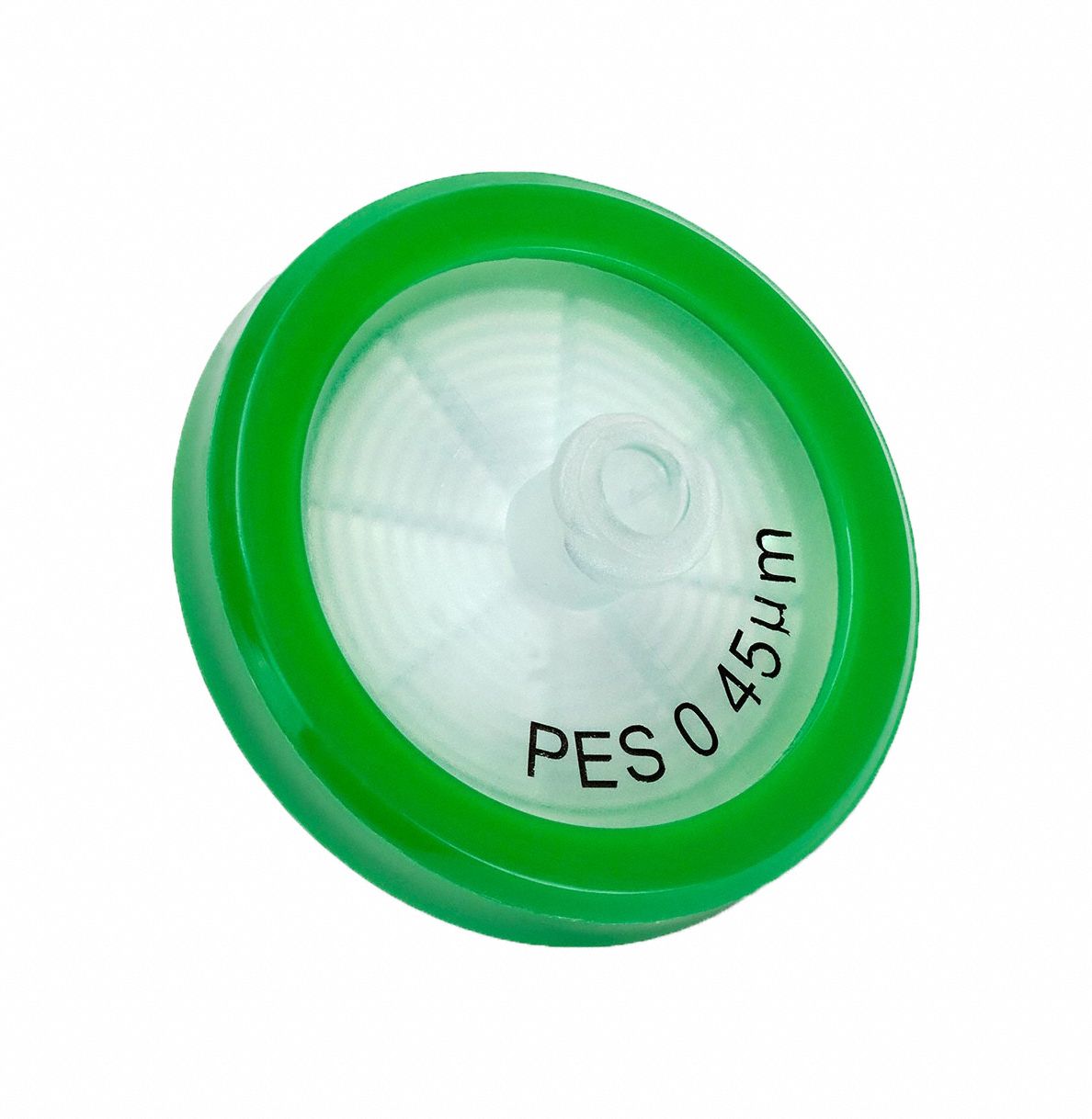 Globe Scientific SF-PES-4530 Syringe Filter, PES Membrane, 0.45µm Porosity, PP Housing, Non-sterile, Bulk Packed, Green, 30mm Diameter, Pack of 100