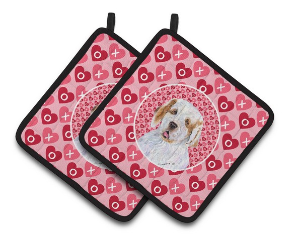 Carolines Treasures SS4500PTHD Clumber Spaniel Hearts Love & Valentines Day Portrait Pair of Pot Holders, 7.5 x 3 x