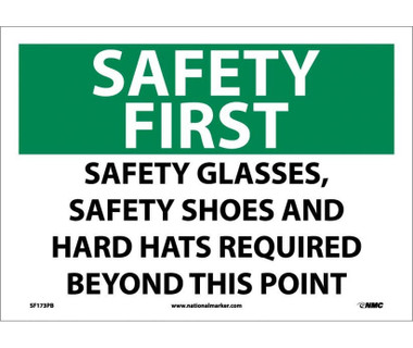 Safety First - Safety Glasses Safety Shoes And Hard Hats Required Beyond This Point - 10X14 - PS Vinyl - SF173PB - Jendco Safety Supply